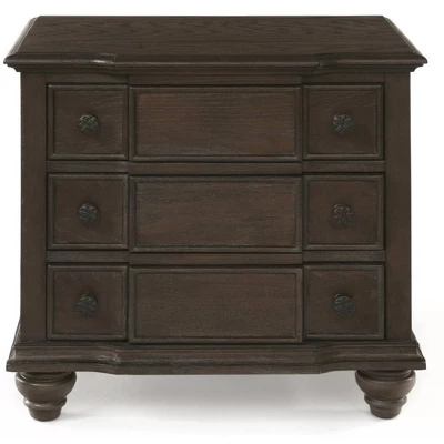 The Baudouin Collection 26113 27″ Nightstand features three drawers and metal hardware that is designed to impress. Made of high quality acacia wood and oak veneer materials, it demonstrates delicate craftsmanship and has the perfect design to enhance your room. English dovetail construction drawers on metal glides, and weathered Oak finish wood single pull knobs. All in all, charming and practical. Case goods are sold separately.