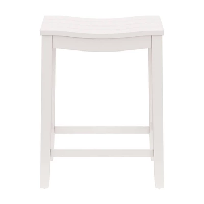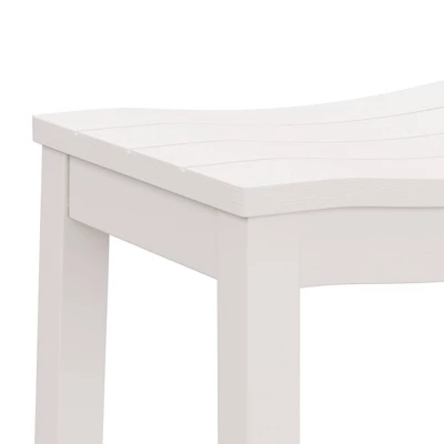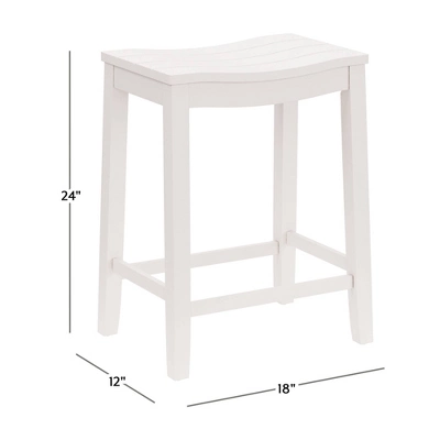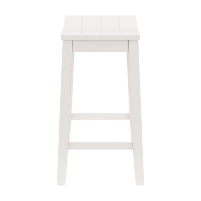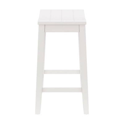 Whether you prefer a sunny, sandy beach or a windy, rocky shore, you’ll love the coastal charm of this counter height stool. Versatile and on-trend, this backless counter stool features a wide, perfectly curved shiplap saddle seat for maximum comfort. A fresh white finish is reminiscent of a cool breeze in a quaint coastal town and is an easy addition to any decor. Durable wood flared legs add extra support and are complemented by perfectly a placed footrest adding an extra layer of comfort while eating, entertaining or working. Assembly is required.