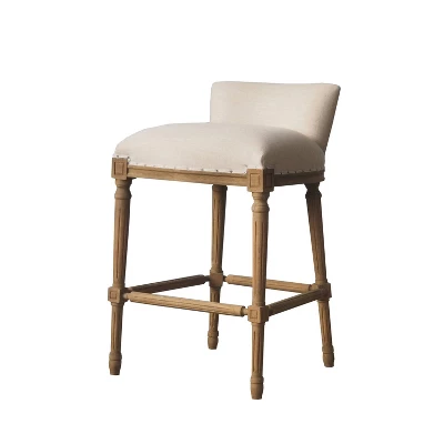 Cozy, rustic seating is as simple as swapping out your current bar stools for the Francesca Stationary Bar Stool. This low back barstool is a fun addition to a home bar or kitchen island. It’s constructed with an oak wood frame and then the seat and back are lightly padded for your comfort. Tan linen upholstery is complemented by nailhead trim around the edges of the seat. The carved legs feature decorative fluting, which adds even more visual panache. Manufactured with precise attention to detail, the Francesca embodies features that are most important when searching for furniture seating.