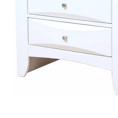 Give your room a stylish appeal with the Ireland Nightstand. The Ireland nightstand in white finish keep essentials close by with 2 storage drawers and 1 pull-out tray. Pull out tray offers you additional surface area. Drawer fronts are beveled and all drawers have English dovetail with center metal glides. Complemented by slightly flared square legs, this features contemporary feel. A modern black finish with shaped drawer fronts. This 3 Drawer Nightstand can be easily cleaned with a damp cloth.