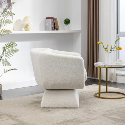 - [Soft Fabric] Designed for your comfort, this elegant swivel chair comes with boucle which is soft enough and skin-friendly. Equipped with comfortable high-density foam cushions provides ultimate comfort and support.
