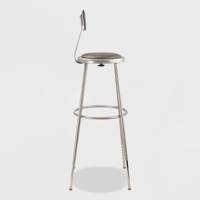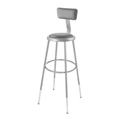 The fortified construction and soft comfort of the 6400 Series heavy-duty padded stools with backrests are ideal for hands-on educational settings like art rooms, science labs, home economics or shop classrooms. These reliable stools feature a sturdy frame of 18-gauge steel tubing securely welded to a 14 diameter seat pan. Riveted through the steel pan are 1/2″ -thick gray vinyl cushioning that will provide years of dependable use. Footrest ring is securely bonded to each leg with four spotwell contact points. Height-adjustable legs extend from 32″ to 39″ in 1-inch increments and adjustable padded backrests can be moved 2″ up/down and forward/back.