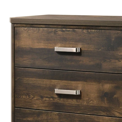 - This rustic yet stylish chest is accented with uniquely grooved panels and rectangular drawer pulls.
