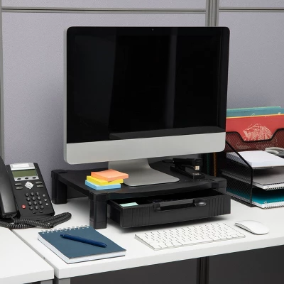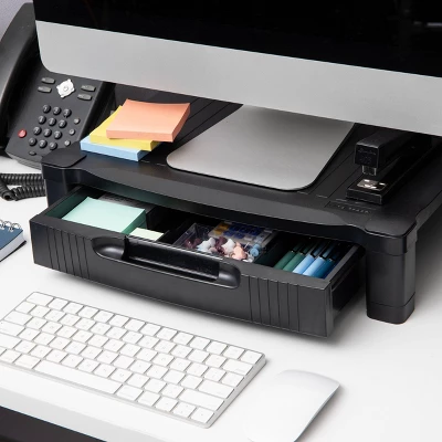 Reams of paper lifting your monitor up? With a cool modern design the Mind Reader monitor stand raises your monitor for maximum comfort, reducing eye and neck strain, extra drawer will even help clear up your desk
