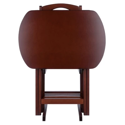 Whether you’re enjoying dinner in front of your favorite show or need a small table for setting out snacks at your next event, the Corbett Four-Piece Oversize Oblong Snack Table Set from Winsome will fit your needs. These folding snack tables come with a stand to provide space-saving storage when not in use. The large tabletop is perfect for setting out an array of snacks when having guests over, or for sitting down with a meal when you don’t feel like sitting at the dining table.