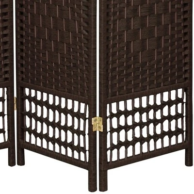 Bring an instant update to your space with the bold look of this Tall Fiber Weave Room Divider from Oriental Furniture. This three-panel room divider is the perfect solution, whether you want to separate your bed from your living space in a studio apartment or you want to tuck away a reading corner. With the hardwood, this screen makes for a durable divider and can be arranged however you like.