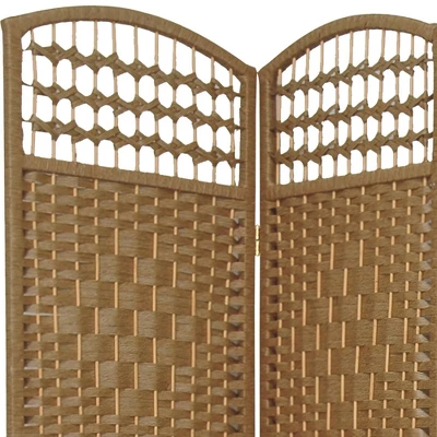 The Tall Fiber Weave Room Divider – Natural is neutral yet dynamic, with snappy stripes to stretch the eye across the 4 panels of this folding screen. At 5 1/2′ tall, this decorative frame adds striking visual geometry to interiors, effectively concealing areas and creating temporary spaces. Its hardwood frame folds at the joints for easy transport.
