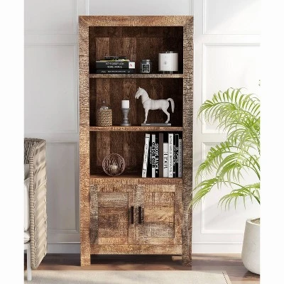 A beautiful place to tuck away books, magazines, and more in this lovely bookcase, showing more than just a storage space in your home. Handcrafted from solid mango wood, a saw blade design enhances the look of the wood construction. Standing 81 inches tall this gives ample storage for all your reading material and collectibles.