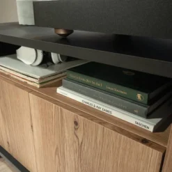 Acadia Way Modern TV Stand For TVs Up To 65″ With Doors Raven Oak – Sauder
