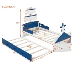 Twin Size Boat-Shaped Platform Bed With Trundle Bed And Storage Footboard-ModernLuxe