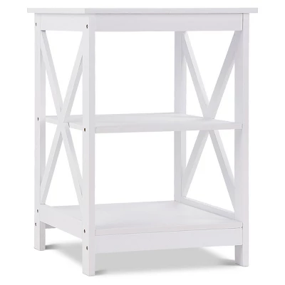 This neat nightstand features is three shelves to give you plenty of room for arranging your goods, it’s designed for creating more storage spaces for your books, pictures or decorative displays. Classic white surface can blend in your home design easily. It can be put in any room at home and add nattiness to your home. It is made of premium MDF ,which makes it Non-toxic and Environmental Friendly ,also sturdy and durable. Our product will serve you for years with your satisfaction. It will BE your excellent choice to buy, don’t hesitate and buy!