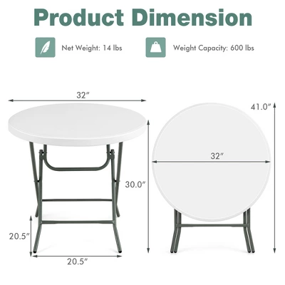 Costway 32'' Round Folding Table Portable & Lightweight Table For Indoor & Outdoor Use White -Furniture Sale Store GUEST 42d36297 12b7 42d7 a3e1 3b592b9b6a8c