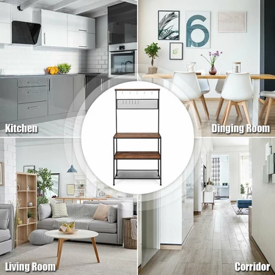 Costway 4-Tier Kitchen Bakers Rack Microwave Oven Stand Industrial W/Hooks & Mesh Panel -Furniture Sale Store GUEST 96e817ec 1980 4bbf 9780 77c478d51a6f