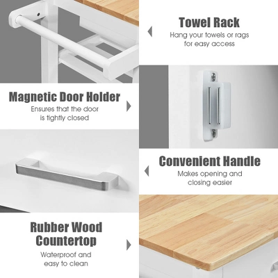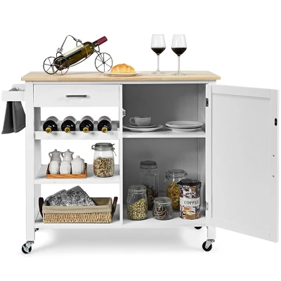 - 〖Durable Kitchen Cart with Solid Wood Tabletop〗: The frame of this kitchen cart is made of high quality MDF and pine to support all your kitchen accessories, the countertop of our kitchen island cart is constructed of long-lasting rubber wood which is uneasily out of shape. So this kitchen cart is sturdy enough to support 300lbs.