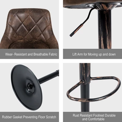 Made of unique hot-stamping cloth, the barstool has good wear resistance and air permeability, and is soft and comfortable. In addition, you can easily adjust the seat height by pressing the lift arm. And the seat can swivel 360degrees. Stable structure with large base holds up to 250 lbs. Most importantly, ergonomic backrest and footrest provide you with comfortable using experience. Now get set of 2 chairs to decor and use anywhere you need them!