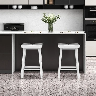 Featuring the saddle seat and footrest design, our 2 pcs kitchen stools enable you and your family members to relax after working or studying. The classic color and clean lines help our stools match well with different room styles. Thus, they can be used in your kitchen, home bar, dining room or other indoor places. Supported by 4 rubber wood legs, each bar chair is not easy to wobble or collapse once assembled. The load capacity of each stool is 330 lbs. Besides, the space-saving backless design allows you to tuck away each stool under any counter or dining room.