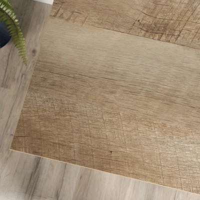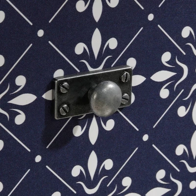 Create a workspace in your home that inspires you by adding this Cottage Road Desk from Sauder. Made with a sturdy and durable wood frame, this desk features a rectangular top that’s lightly stained to show off the natural grain of the wood. The base is painted white for a clean and polished look, while the two drawers on either side have mosaic-style prints on the front in navy and white for a bold accent. Complete with two slatted lower shelves for ample storage space, this white desk with drawers is the perfect place for a day’s work or crafting on the weekend.