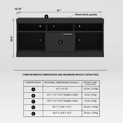 | Dimensions (Overall) | 27 Inches (H) x 61 Inches (W) x 16 Inches (D) |