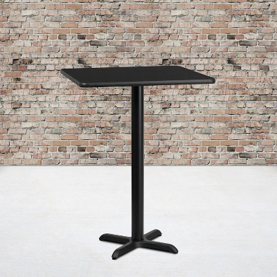 Complete your restaurant, break room or cafeteria with this bar height table top and base configuration. This set is designed for commercial use to withstand the daily rigors in the hospitality industry. This set will also make a great option for your home as a dining table or in the rec room. The reversible black or mahogany top allows you to choose your color of choice and then affix to the base. Surface is heat, scratch and moisture resistant. Use a mild detergent and water, dry clean to keep your tables spotless. Whether you are just starting your business or upgrading your furniture this bar table set will complete the look. Additional Features: Heat, Scratch and Moisture Resistant, Clean top with mild detergent/water and cloth dry, 22″ x 22″ Table X-Base with 3″ Dia. Bar Height Column, Base Size: 22″W x 22″D x 42″H, Easy 2-Piece Base Assembly with Single Bolt, Top Plate Pre-Welded to Column, Cast Iron Construction, Black Powder Coated Finish, Designed for Commercial Use