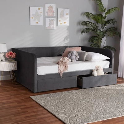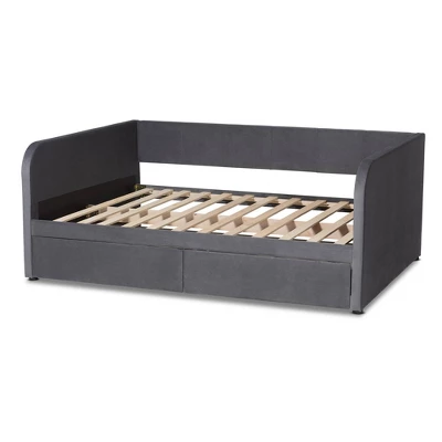 Full Basanti Velvet Fabric Upholstered 2 Drawer Daybed Gray/Dark Brown – Baxton Studio