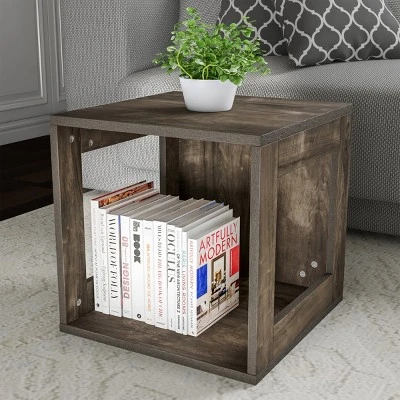 Bring the best of style and function to your home with the Modular Open-Sided CubeTable by Hastings Home. The modern, clean lines and chic, updated style bring casual elegance to your home. The table is constructed from sturdy manufactured wood that supports a 22-pound weight capacity on the shelf as well as the tabletop. It can be used freestanding on its own, side by side with another to create a coffee table or with bracing kits (not included) to stack for vertical shelving. The end table can be assembled easily with the included hardware and convenient, pre-drilled holes on each piece of the unit. The 3 open sides maximize the display of a wide variety of items like books, magazines, collectibles, and even vinyl records! The stylish, wood grain look of this side table is sure to enhance your living space decor.