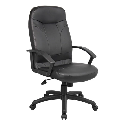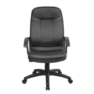 This executive leather chair is elegantly upholstered in black LeatherPlus, a combination of leather and polyurethane that is as comfortable as it is durable. It also has polypropylene arms and a matching 27” nylon base with five hooded double wheel casters. In addition to providing optimal stability, this chair can also be personalized for maximum comfort. Its upright locking position, pneumatic gas lift seat height adjustment, and adjustable tilt tension control let users customize the chair to their liking.