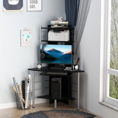• COMPACT DESK DESIGN: HOMCOM’small but tall corner office desk with storage is perfect for small rooms or limited spaces and has sufficient storage for your computer monitor, keyboard, and printer without taking up much room.