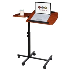 Mind Reader Bedside Workstation Adjustable Desk Nightstand, Wood Finish