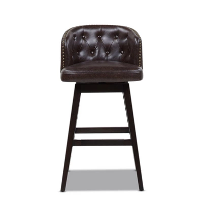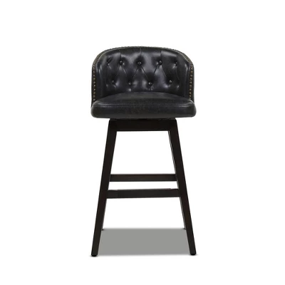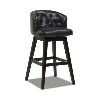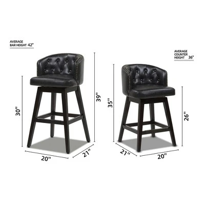 Classic and refined, the Davidson Bar Stool Collection by Jennifer Taylor Home shows of great design and functionality. Featuring a low back and recessed arms with button tufted details and hand applied nail heads, the craftsmanship of the Davidson stool is undeniable. The 360 degree swivel base and solid wood legs with a footrest accented with brass kickplate are quality functional elements that guarantee functionality and durability. Available in both counter- and bar-heights, the Davidson stool is perfect for any dining area, from a kitchen island to a man-cave bar.