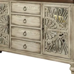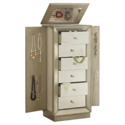 This Jewelry Armoire from Acme Furniture is the jewelry organizing system you’ve been looking for. Doors on each side feature hooks to keep your necklaces tangle-free, and six drawers along the front are ideal for bracelets, silk scarves, pins, hair accessories and more. Keep your rings in the storage compartment on top, and use the flip-up mirror while you’re getting ready.