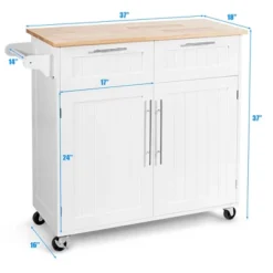 Costway Rolling Kitchen Cart Island Heavy Duty Storage Trolley Cabinet Utility White