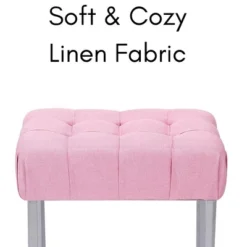 BirdRock Home Rectangular Tufted Pink Foot Stool Ottoman With Silver Legs