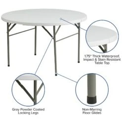 Emma And Oliver 4-Foot Round Bi-Fold Granite White Plastic Event Folding Table With Handle