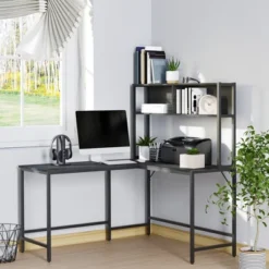 HOMCOM 62″ Arch Corner Computer Desk With Printer Hutch And Storage Shelf