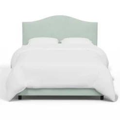 The interesting shell shape of this Mid-Century Modern bed has curves that are eye-catching. Made to order and manufactured in Illinois the headboard and rails on this feature piece are skillfully hand upholstered in a rich Shiny Velvet fabric. If you have been searching for an uncommon or exceptional look for your bedroom space, it just doesn’t get much better than this bed. So sophisticated you can easily build the rest of your design around it.