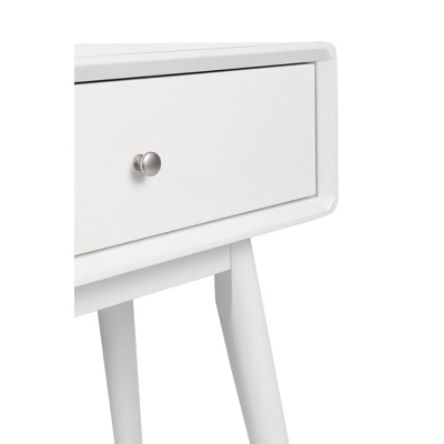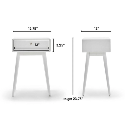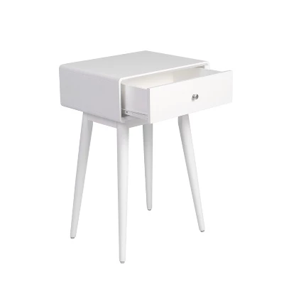 Add to the aesthetic of your mid-century modern decor with the Rory One-Drawer Side Table from Adore Decor. A stark white finish gives this one-drawer table a sleek look that works well in a variety of spaces, and it’s completed with tall, tapered legs to define its mid-century modern design. Great for keeping next to an armchair or sofa in your living room, one drawer lets you keep essentials out of sight but close by when you need them, and the tabletop can beautifully display a lamp or potted plant.