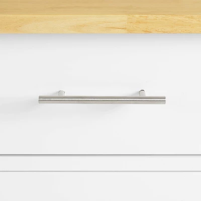 Organize your kitchen with the space-saving design of the Savannah Compact Kitchen Island/Cart. Ideal for adding extra storage and workspace, this island offers a solid natural wood countertop and large cabinet with an adjustable shelf inside. The caster wheels on that base allow you to create a flexible food prep or serving space, while the full-extension drawer adds an ideal spot to tuck away everyday items. By adding a towel bar on one side and two utility hooks on the other, the Savannah Compact Kitchen Island addresses all of your at-home chef needs.