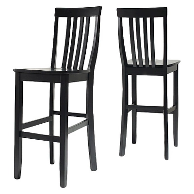Constructed of solid hardwood, this School House style bar stool (set of two) from Crosley is designed for longevity. Contoured seats and shaped back provide the ultimate in comfort. The 30 inch seat height makes this stool perfect for 42 inch height dining tables or counter seating. Skilled craftsmanship and attention to detail is sure to put the finishing touch on your home.