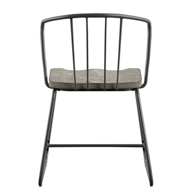 Fun and fabulous, the Nowell Iron and Gray Finish Dining Chairs (Set of 2) from iNSPIRE Q deliver a touch of charm to your dining space. Constructed with iron for lasting strength and stability, the frame has a powder-coated, black finish. The gray seat boasts a visible wood grain finish, lending some rustic flair. Comfort comes from the contoured seats and foot and arm rests. With a sled-inspired design, these chairs showcase a unique style to your home.