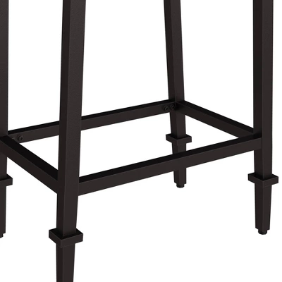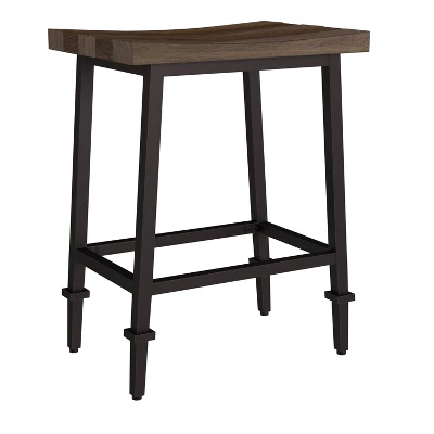 This set of two metal Counter Height Stools have sturdy, clean-lined metal bases, and are crowned with wooden saddle seats in a distressed walnut finish. And because they’re backless, they easily stow away under kitchen islands or tables for extra floor space. With modern appeal and farmhouse charm, these stools fit in with almost any decor. Assembly required.