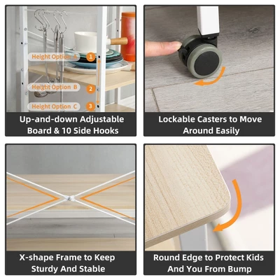 - EXTRA SPACE: 2nd and 3rd tiers offer enough open space to store toasters, spices, and dishes; S-shaped hooks hang cooking spoons or dry towels