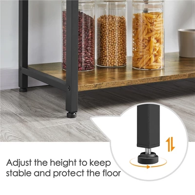 • 【Sturdy & Durable: Constructed of 0.6’’ thick particle board and 0.8×0.8’’ metal square tube, our multiple-layer kitchen baker’s rack features strong support for your kitchen items.